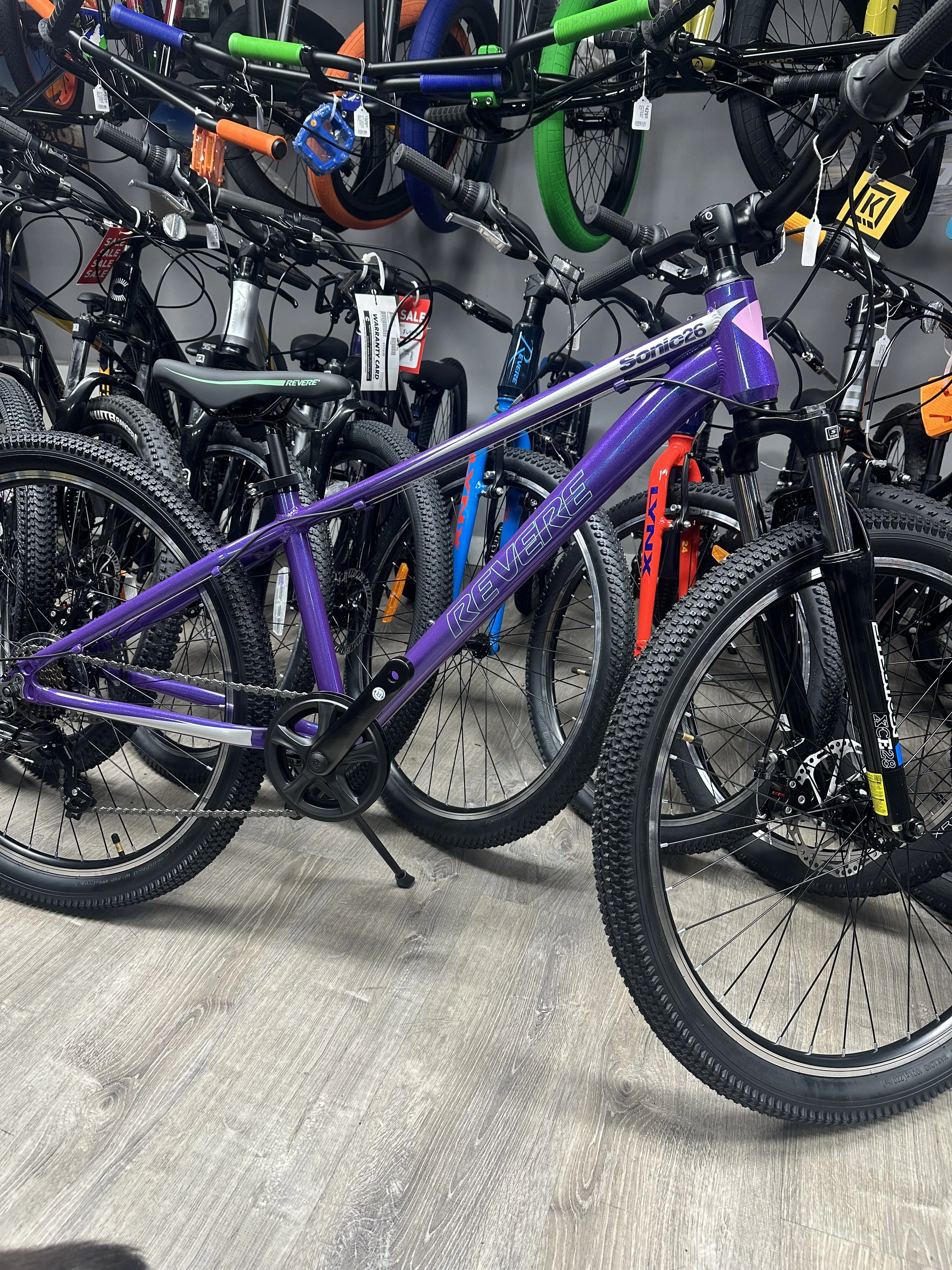 The Revere 26” is an unbeatable value for the young rider in your family. Perfect for the bike path or cruising the neighborhood — and that eye-catching purple paint doesn’t hurt either. 💜🚲